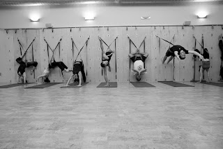 The next class was Flow & Wall Yoga with Dido. The description on this class read: “This class will take you through a variety of flowing sequences to warm up and open up your body and then it will use the yoga wall to help you experience a different interaction with gravity.” I think a better description of this class is; Part Yoga, Part Cirque du Soleil. This class will have you feeling strong and lifted while you fly through the air and relax into inverted poses as you defy gravity. We started off the class with floor or mat work; focusing on rooting, tree poses, opening the chest, and external rotation of the “arm bone”. The opening sequence of poses had me feeling very strong and warrior-like, it was a great choice for me that day, as I needed the mental lift. Moving to the wall, we worked on hanging downward dog & back stretching, flying … yes flying, and hanging back bends. I love this class and would totally recommend it to a first-time student to yoga as Dido is extremely patient and explains the moves and the motives for the moves in such a way it makes sense to all of us non-yogis.
